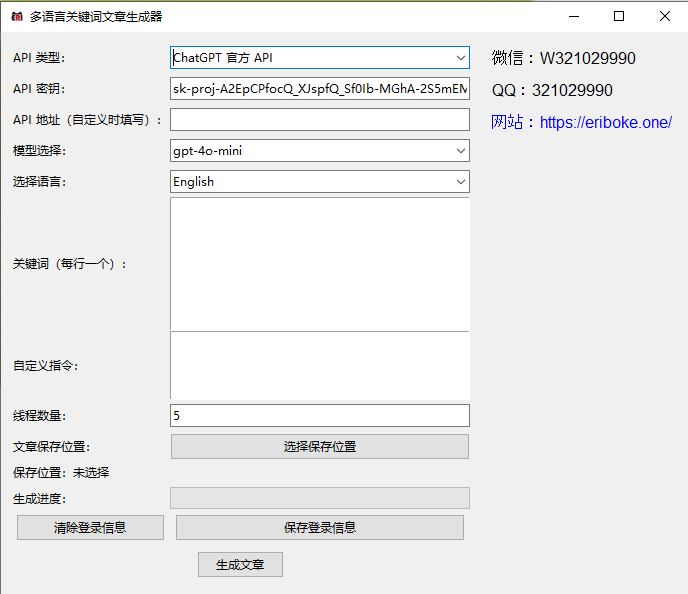 通过ChatGPT API实现批量生成文章,拥有一个体验良好的GUI。文章源自ERI博客-https://eriboke.one/129.html